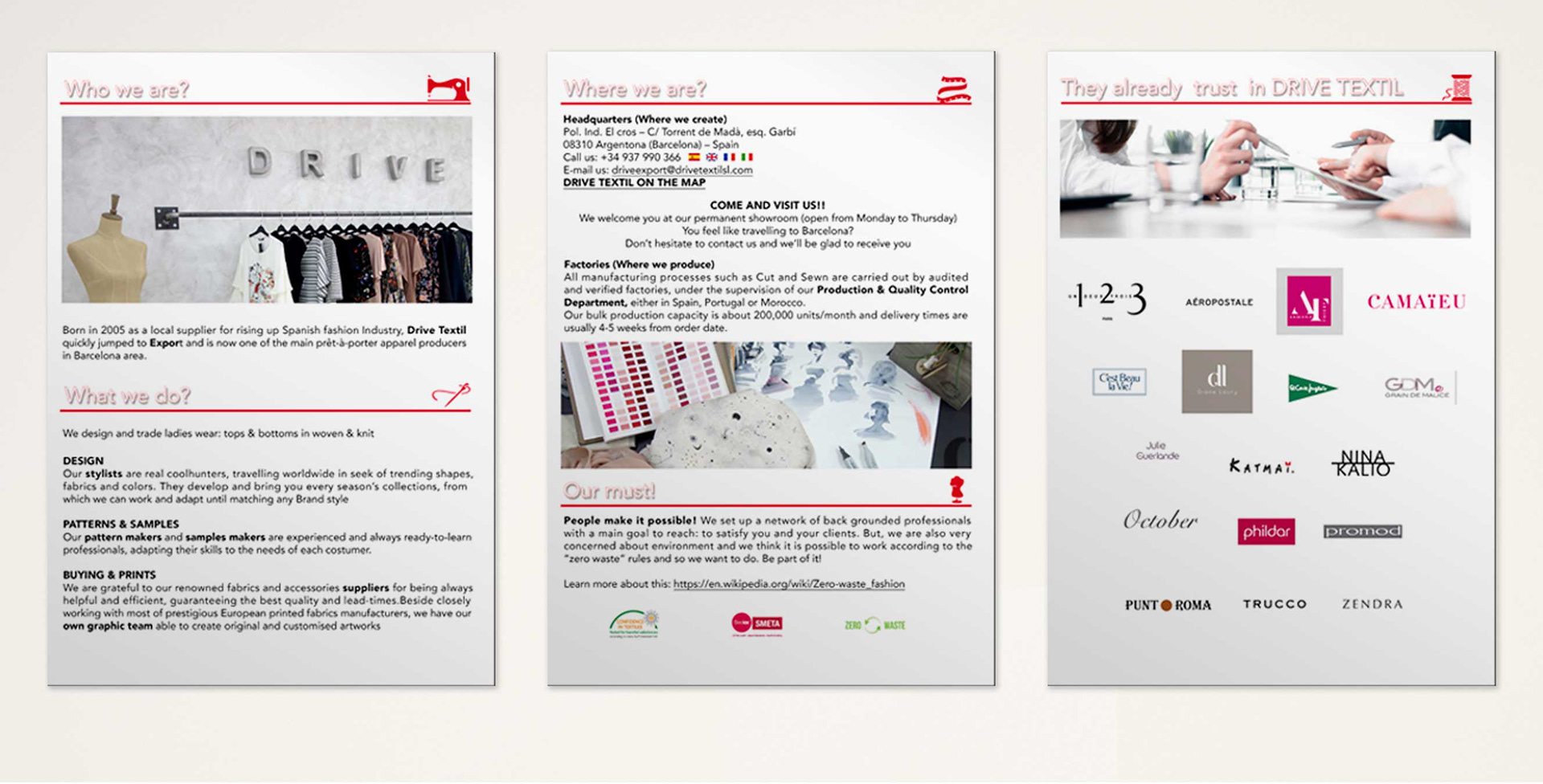 Drive Textil, presentation brochure for the company's commercial use. Graphic design, layout and photographs.