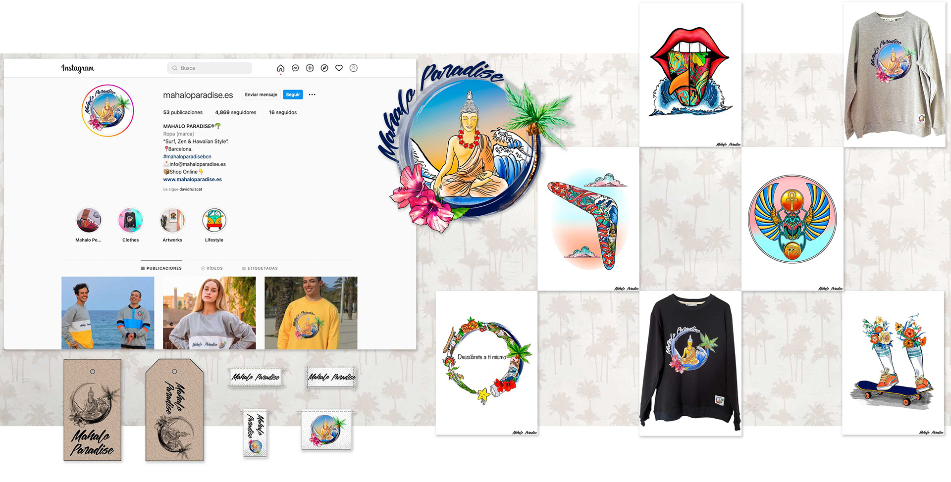 Mahalo Surf wear Design and illustrations for your collections in various seasons, icon design for social networks and web, label design.